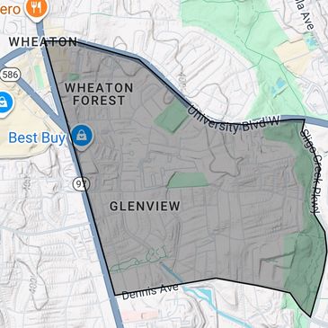The boundaries of the Association are Dennis Avenue to the south, Sligo Creek Parkway to the East, University Boulevard West to the North, and Georgia Avenue to the West.